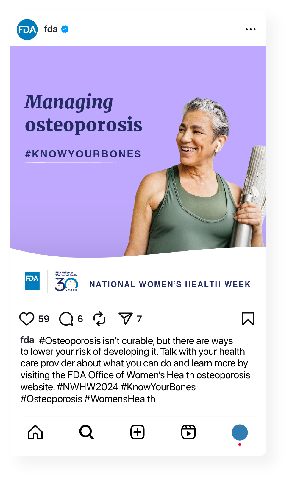 In 2024, we were tasked with developing a social media campaign around the theme of osteoporosis and bone health—which may not always be a top-of-mind topic during routine visits or when taking preventative measures for health risks.